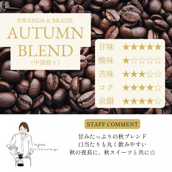 毎年秋に発売するAutumnBlendのテーマは『秋のスイーツに合う』で、