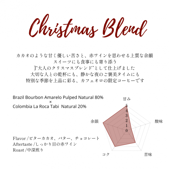 スイーツにも食事も寄り添う『大人のクリスマスブレンド』として仕上げました